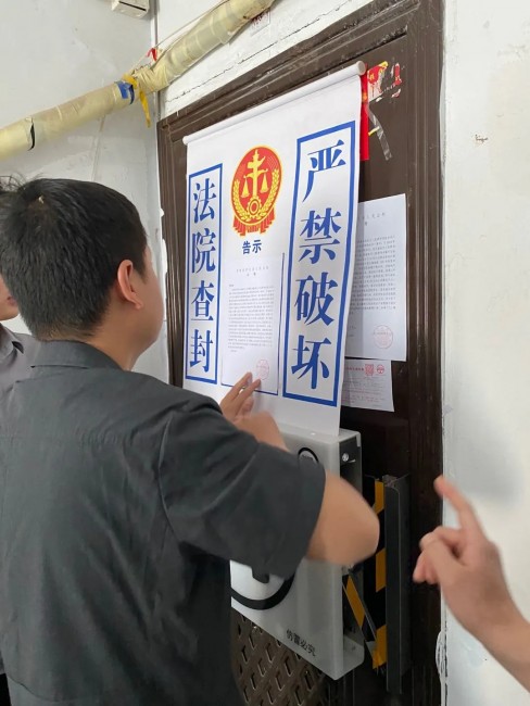 因张某拒不履行还款义务,还将房屋挂到房产中介企图出售。执行干警采用“电子封条”取代纸质封条对其名下的房产进行了查封。仅用了几分钟,执行干警便将一个长方形,覆盖面积近2平方米的“电子封条”牢固地加装在张某家的防盗门上。